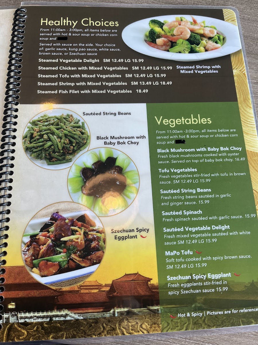 Sliced pork stir-fried w. green peppers, red peppers, onions and mushrooms in spicy Szechuan sauce.